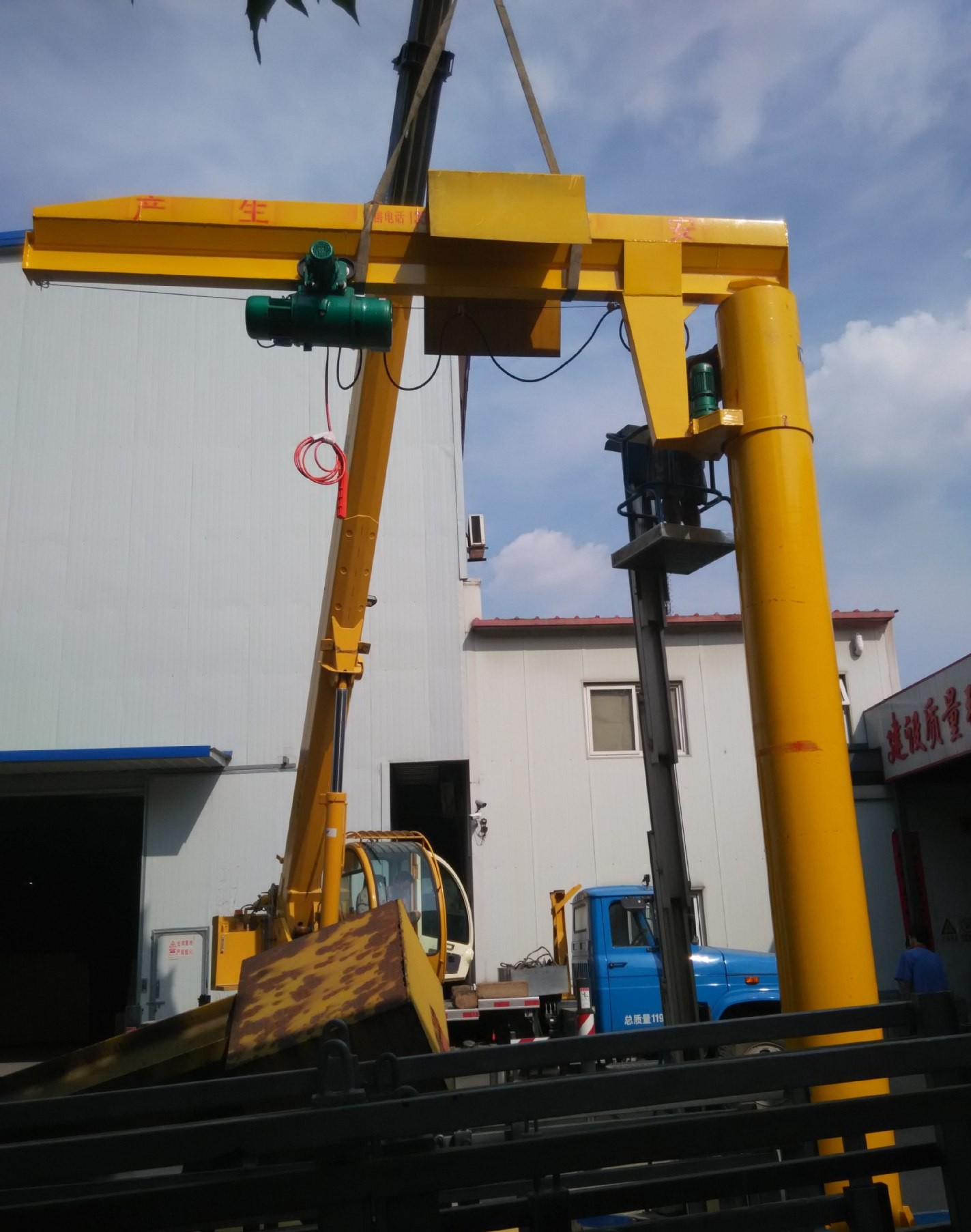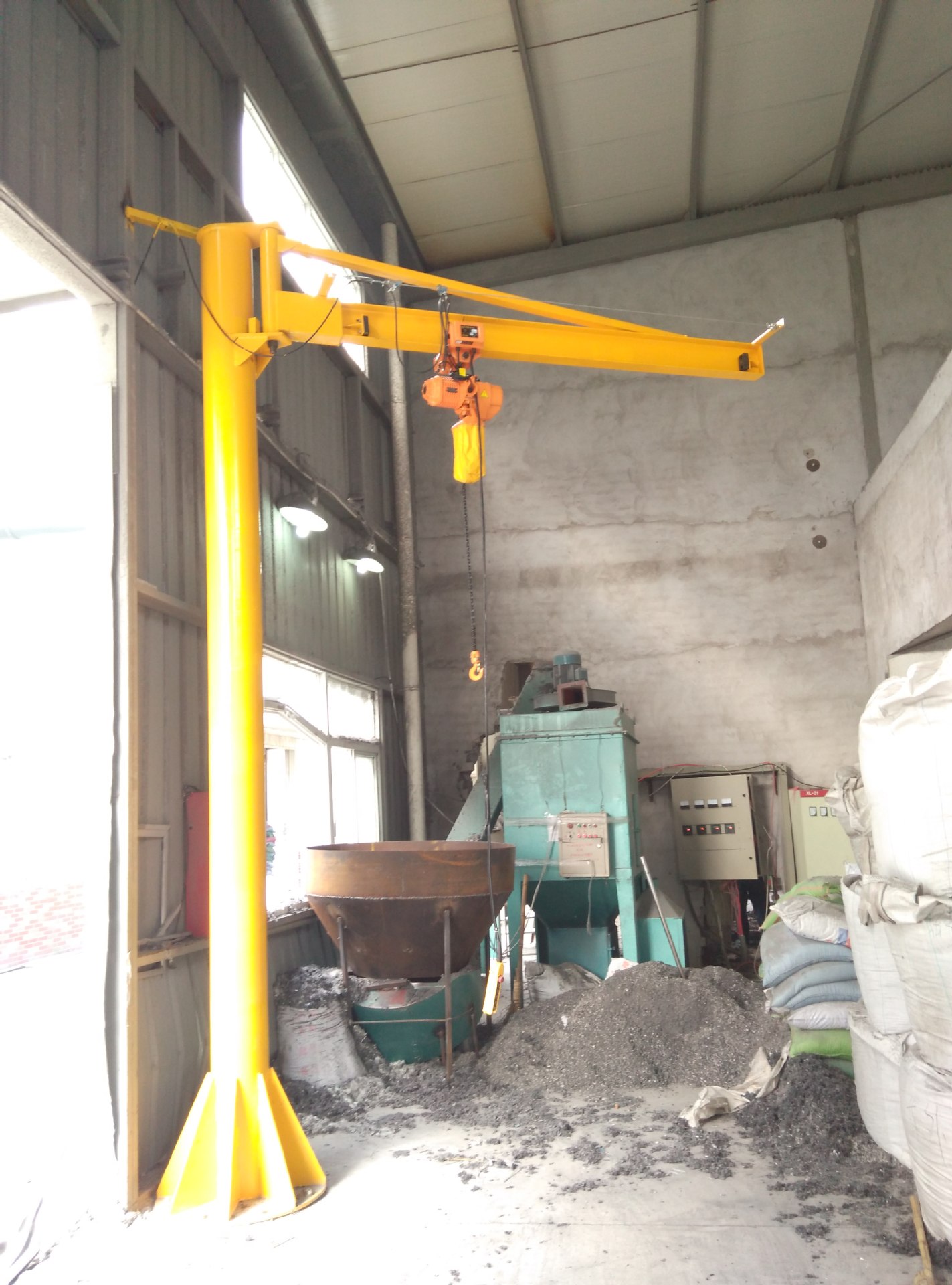 起升、運(yùn)行和回轉(zhuǎn)均為電動(dòng),結(jié)構(gòu)緊湊,適用于低凈空,回轉(zhuǎn)角度360°或≤270°電動(dòng)定柱式起重機(jī),設(shè)計(jì)符合中國(guó)機(jī)械行業(yè)標(biāo)準(zhǔn),工作強(qiáng)度為中型,滿足JB/T 8906-1999的要求。起重機(jī)旋臂為工字鋼結(jié)構(gòu),經(jīng)久耐用;結(jié)構(gòu)尺寸小,特別有利于提高吊鉤行程。
