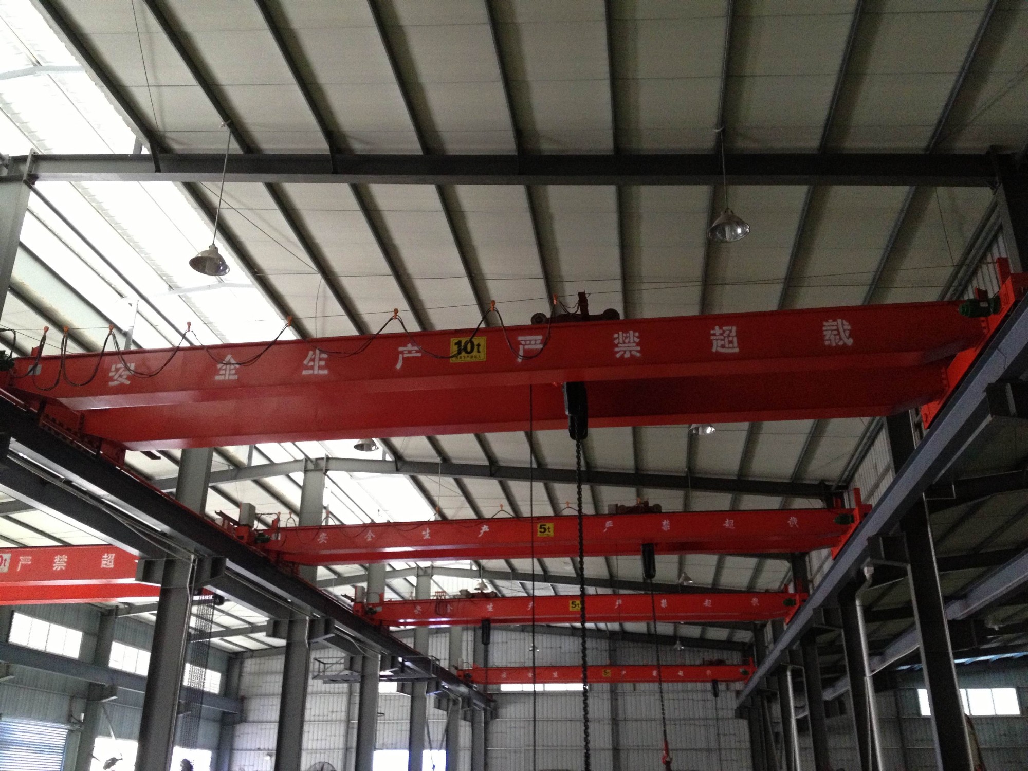 QC型電磁橋式起重機帶有可卸的電磁盤,本機由箱形橋架。大車運行機構、小車、電氣設備、電磁盤五部分組成,全部機構均在操縱室內操縱,當露天使用時帶有防雨設備。適用干冶金工廠在室內或露天的固定跨間較繁重地裝卸及搬運具有磁性的黑色金屬制品與材料(如鋼錠、型鋼、生鐵塊)在機械廠。庫房中也常有來搬運鋼料、鐵塊、廢鐵、廢鋼、鐵屑等物料。