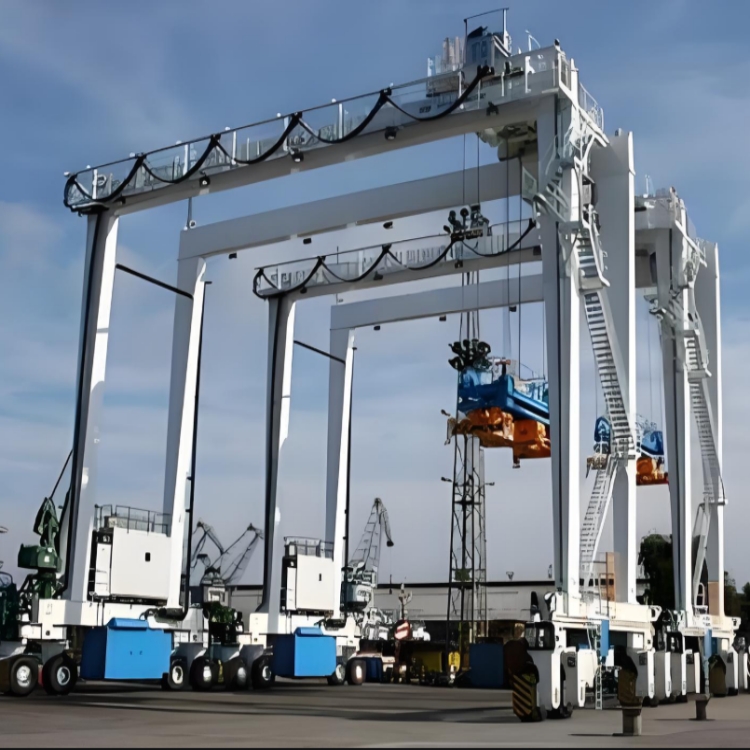 采用雙主梁箱型結(jié)構(gòu)或桁架結(jié)構(gòu),主梁跨度覆蓋 6~8 列集裝箱加 1 條車道(常規(guī)跨度 20~30m),堆垛高度可達(dá) 4~7 層集裝箱 + 底盤車高度;門架兩側(cè)設(shè)有剛性支腿,保證整機(jī)穩(wěn)定性,部分機(jī)型配備柔性支腿,適應(yīng)小范圍地面沉降。