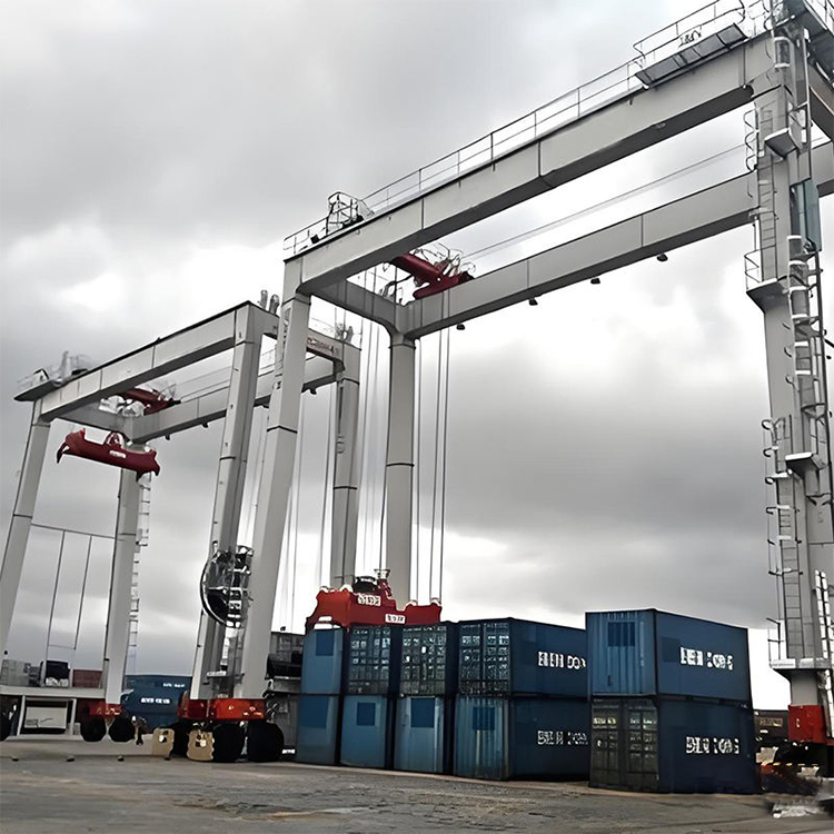 輪胎式集裝箱門式起重機(jī)(Rubber-tyred Gantry Crane,簡(jiǎn)稱 RTG) 是一種以輪胎為行走機(jī)構(gòu)、專為集裝箱堆場(chǎng)作業(yè)設(shè)計(jì)的重型起重設(shè)備,主要用于集裝箱的堆垛、轉(zhuǎn)運(yùn)、裝卸車作業(yè),廣泛應(yīng)用于港口集裝箱堆場(chǎng)、鐵路貨運(yùn)站、內(nèi)陸集裝箱中轉(zhuǎn)站等場(chǎng)景,核心優(yōu)勢(shì)是機(jī)動(dòng)性強(qiáng)、場(chǎng)地適應(yīng)性高、無需鋪設(shè)軌道,可靈活調(diào)整作業(yè)區(qū)域。