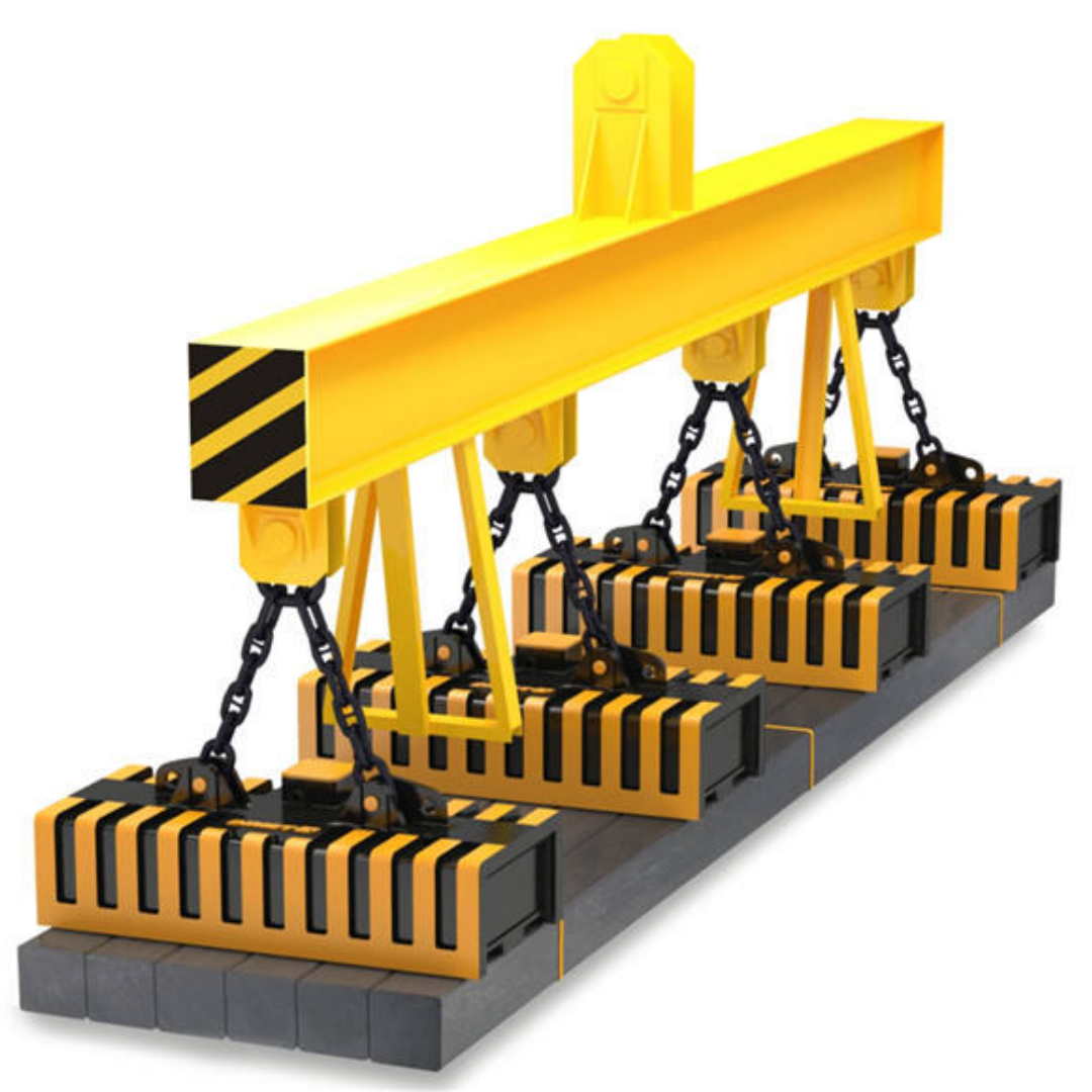 • 電磁吸盤吊具:通電產(chǎn)生磁力吸附鋼板,適配鋼材堆場、剪板機(jī)上料,斷電時需配備備用吊索防止墜落;